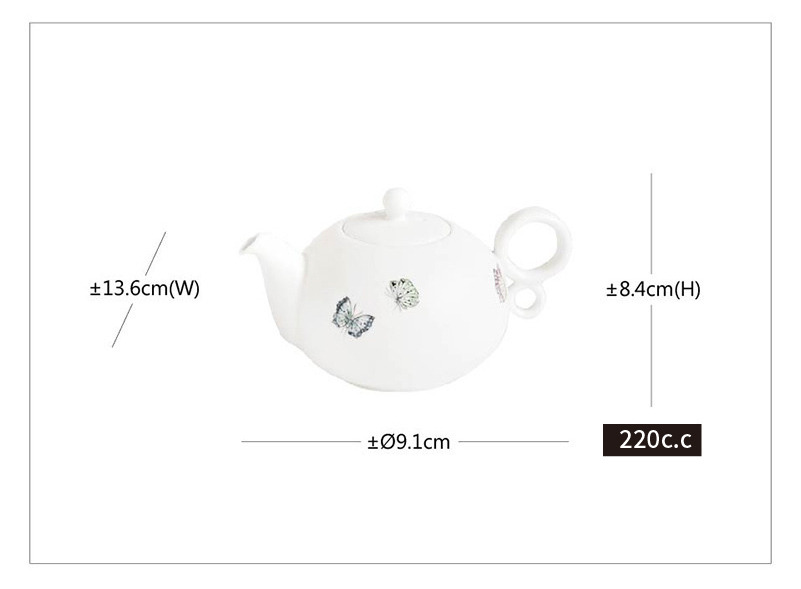 手繪蝴蝶點綴,清新雅致。經高溫再燒製,正常使用圖案不會脫落。