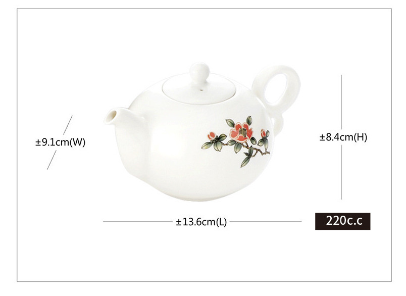 手繪茶花點綴,花瓣清新素雅,高溫再燒製,正常使用圖案不會脫落。